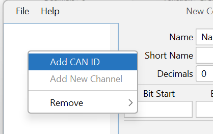 - To add a channel that is associated to a CAN ID: Right-click the CAN ID and select