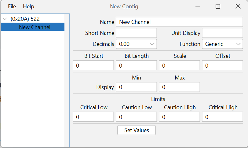 Upon launching Crew Chief for the first time, you will need to either load an existing CAN message configuration or create a new one. We provide default preset config files for common setups with AIM dashes, AIM Smarty cams, and Megasquirt ECUs. If using these setups, simply load the relevant .rcan files.